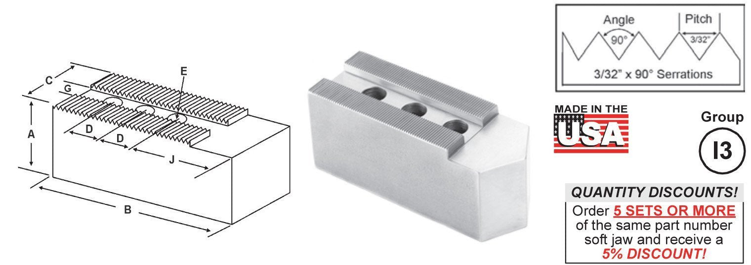SOFT JAWS FLAT - 3/32" x 90° Serrations