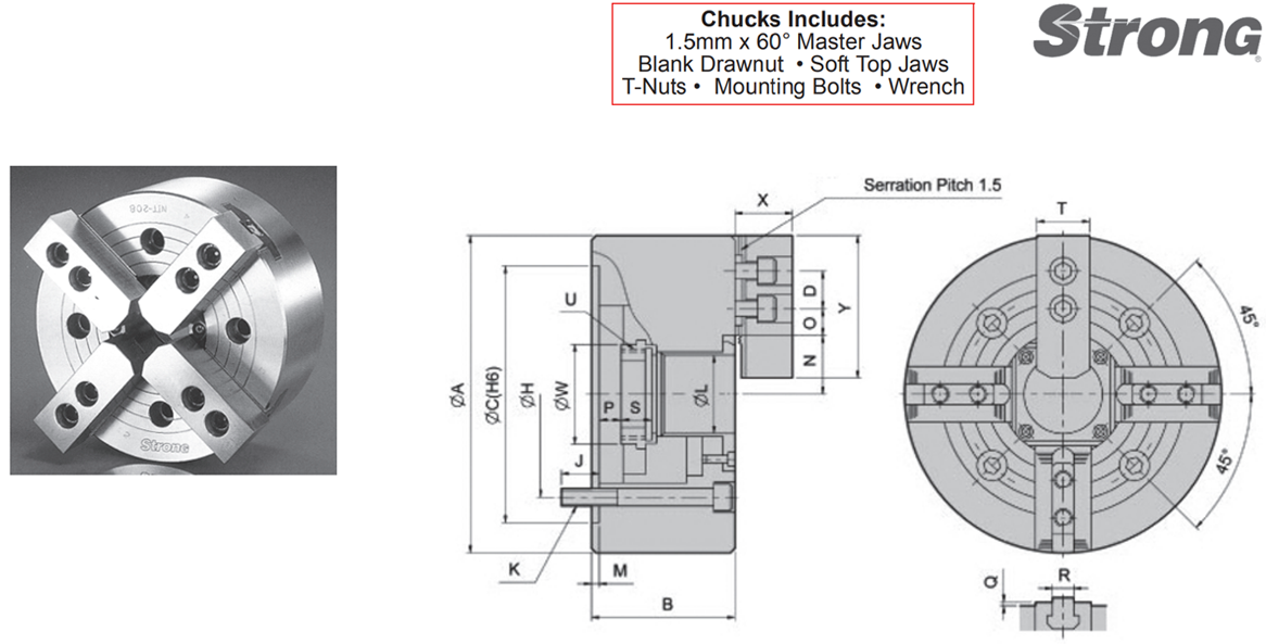 Chuck Size | Chuck Model | Chuck Dia. | Thru-hole Dia. | Mount | Part Number | Price Each |