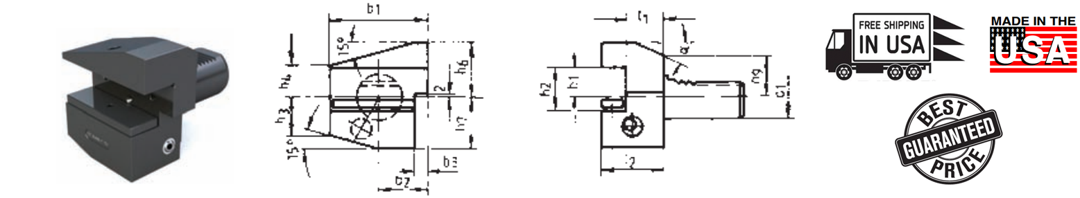 | d1 | b1 | b2 | b3 | h1 in | h1 mm | h2 | h3 | h4 | h6 | h7 | h8 | L1 | L2 | α | Part Number |