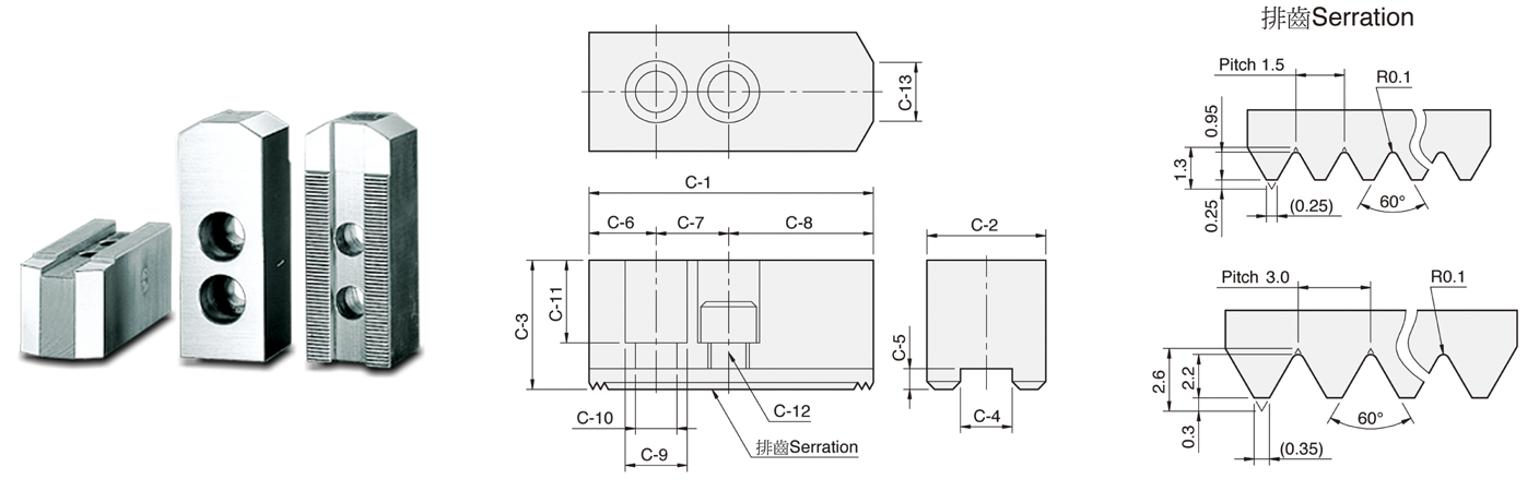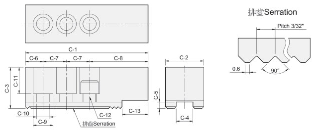 | C-1 | C-2 | C-3 | C-4 | C-5 | C-6 | C-7 | C-8 | C-9 | C-10 | C-11 | C-12 | C-13 | Serration Pitch |