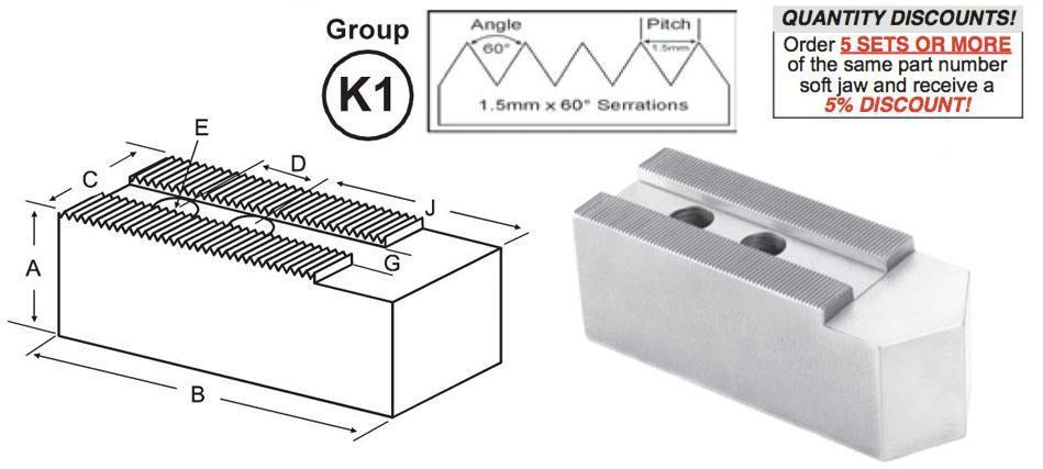 SOFT JAWS FLAT - 1.5 mm x 60° Serrations - Chuck Size 4 - 8