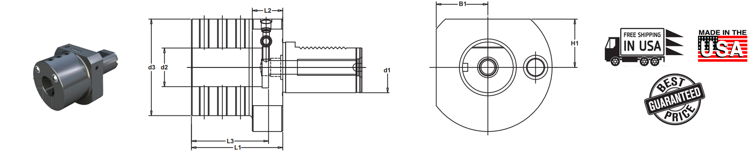 | d1 | d2 Metric | d2 Inch | d3 | B1 | H1 | L1 | L2 | L3 | Part Number | Price |