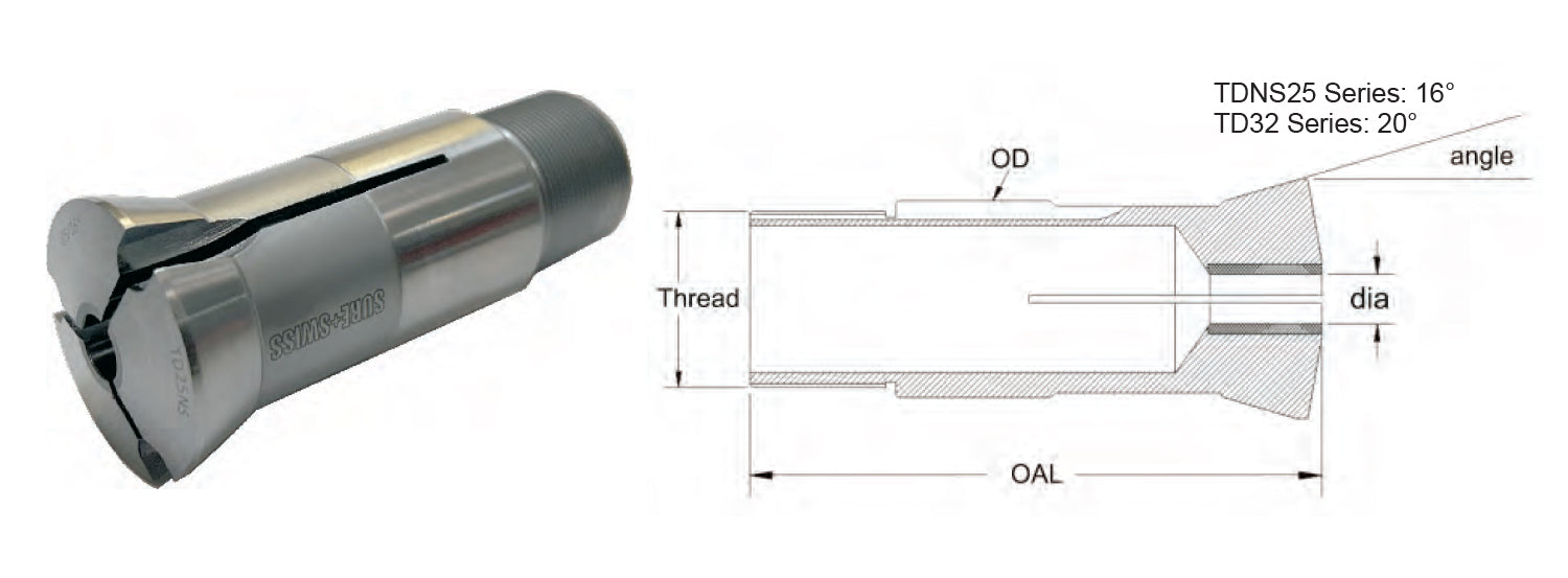 TD25NS Series: 16° - Custom guide bushings can be made per your requirements
