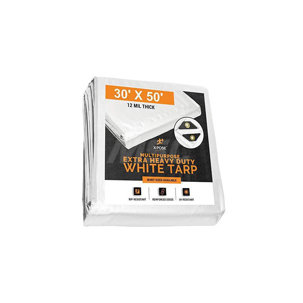 Tarp/Dust Cover: White, Rectangle, Polyethylene, 50' Long x 30' Wide, 12 mil Polyethylene, Rectangle