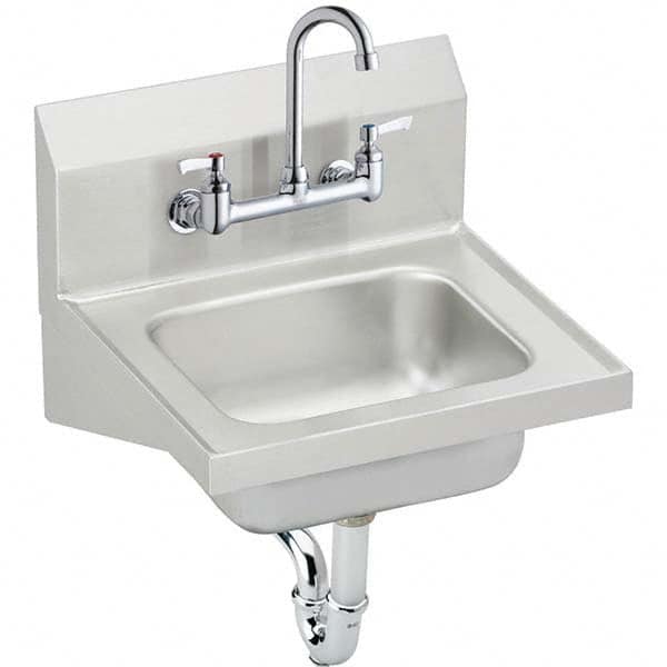 Sinks; Type: Hand Sink Wall Mount w/Manual Faucet; Outside Length: 16.750; Outside Length: 16-3/4; Outside Width: 15-1/2; 15.5 in; Outside Height: 13; Outside Height: 13.0 in; 13 in; 13.0000; Material: Stainless Steel; Inside Length: 12; Inside Length: 12