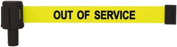 Banner Stakes - 6.61" High x 15' Long x 2-1/2" Wide Retractable Barrier Belt - Plastic & Polyester, Matte Finish, Yellow, Use with Banner Stakes Plus Stanchion, Banner Stakes Plus Base