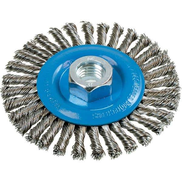 WALTER Surface Technologies - 4" OD, 5/8-11 Arbor Hole, Stringer Bead Stainless Steel Wheel Brush - 3/16" Face Width, 0.02" Filament Diam, 20,000 RPM