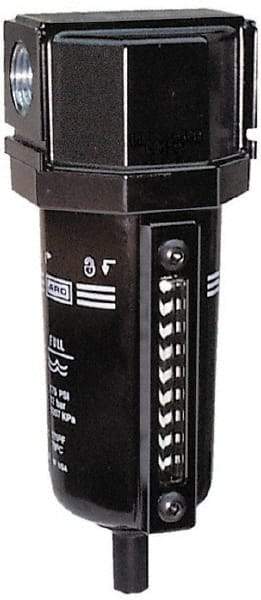 ARO/Ingersoll-Rand - 1/2" Port, 7.047" High x 2.874" Wide Standard Filter with Metal Bowl, Manual Drain - 197 SCFM, 250 Max psi, 175°F Max Temp, Sight Glass Included, Modular Connection, 2.4 oz Bowl Capacity - USA Tool & Supply