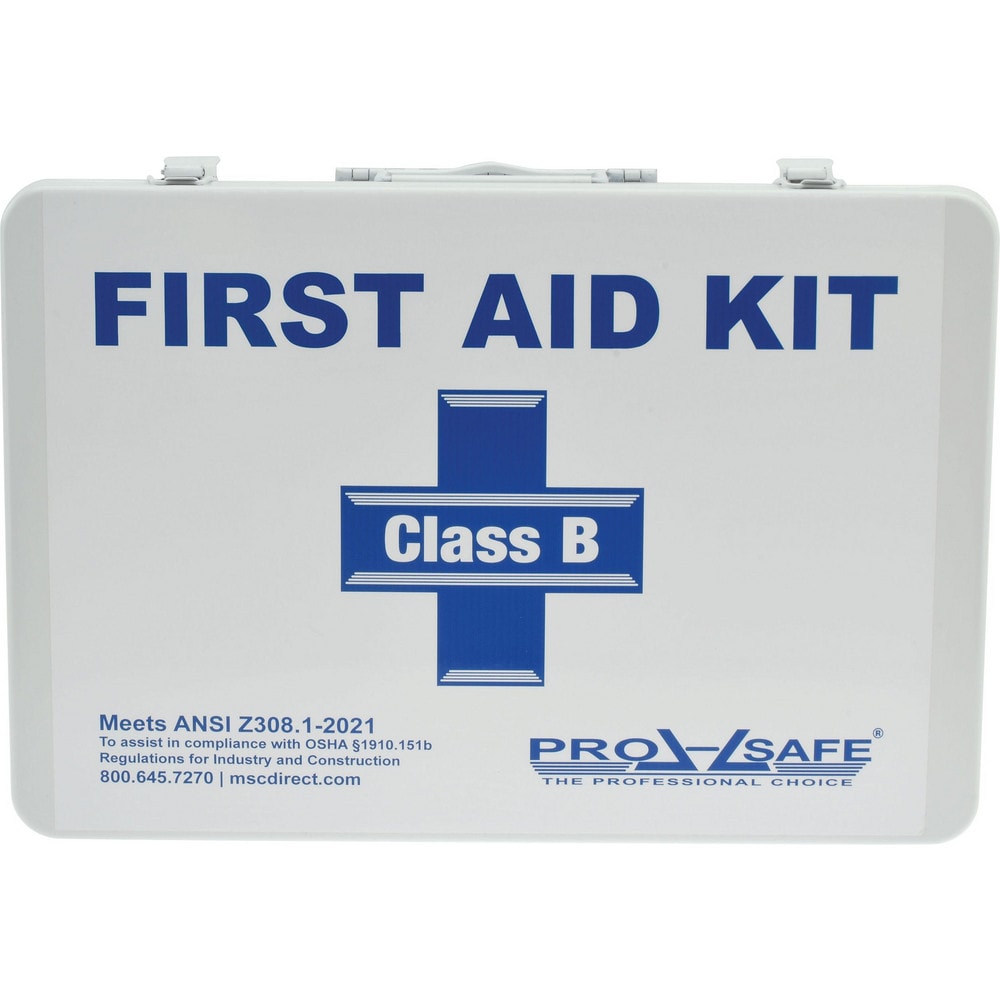 Includes | 2 - Triangular Bandage with Pins Non-Sterile; 4 - Combine ABD Pads 5 in x 9 in; 1 - Adhesive Tape 1/2 in x 5 yd; 1 - Adhesive Bandage 1 in x 3 in Strip 50/box; 1 - Gauze Roll 4 in x 5 yd; 1 - Splint Multi-Purpose; 1 - First Aid Handbook; 1 - Gauze Pad 3 in x 3 in Sterile 25/box; Kit fills subject to change; 1 - Hand Sanitizer 25/box; 1 - Eye Wash 4oz; 1 - CPR Mask/Breathing Barrier; 1 - Antiseptic Spray 2oz Pump; 2 - Gauze Roll 2 in x 5 yd; 2 - Burn Dressing 4 in x 4 in; Meets ANSI Z308.1-2021; 2 - Eye Pads; 1 - Triple Antibiotic Ointment 25/box; 1 - Rescue Blanket Silver 52 in x 84 in; 1 - Burn Spray 2oz Pump; 2 - Cold Pack Small Boxed; 1 - Tourniquet CAT/Windlass; 4 - Powder Free Vinyl Gloves Disposable Pair/L; 1 - Wire Scissors 4.5 in |